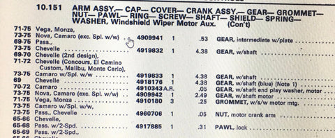 APPLICATION: Vega Monza Nova Camaro 1963 -72 OLDSMOBILE F85 WIPER GEAR 2 SPD